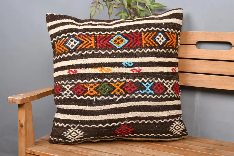Brown & Red Embroidered Throw Pillow, 24x24 Handmade Cushion