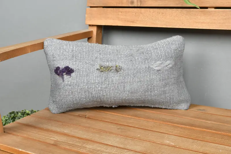 Gray Southwestern Embroidered Throw Pillow, 8x16 Handmade Cushion