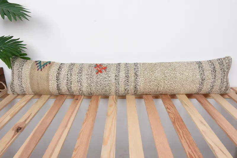 Geometric Beige & Brown Pillow, Handmade Embroidered Throw Pillow