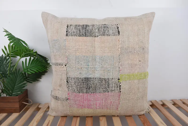 Beige & Bronze Patchwork Throw Pillow, Handmade Vintage Pillow