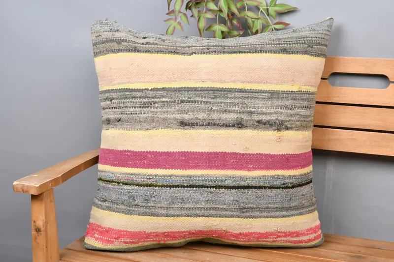 Brown & Pink Striped Throw Pillow, 24x24 Embroidered Cushion