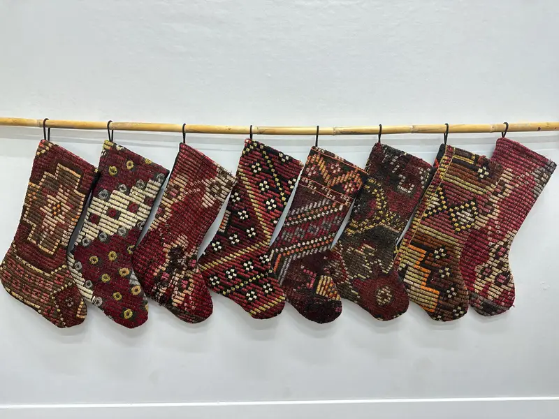 Beige 7-Inch Christmas Stocking, Brown Ornament Pattern Stocking