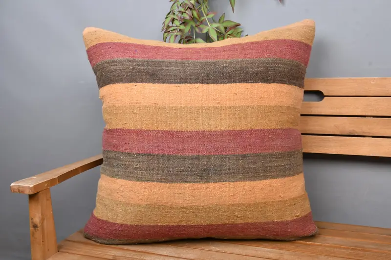 Beige & Pink Striped Throw Pillow, 28x28 Embroidered Cushion