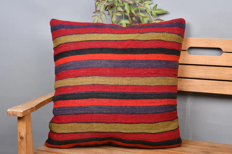 Red & Bronze Striped Pillow, 24x24 Handmade Throw Pillow