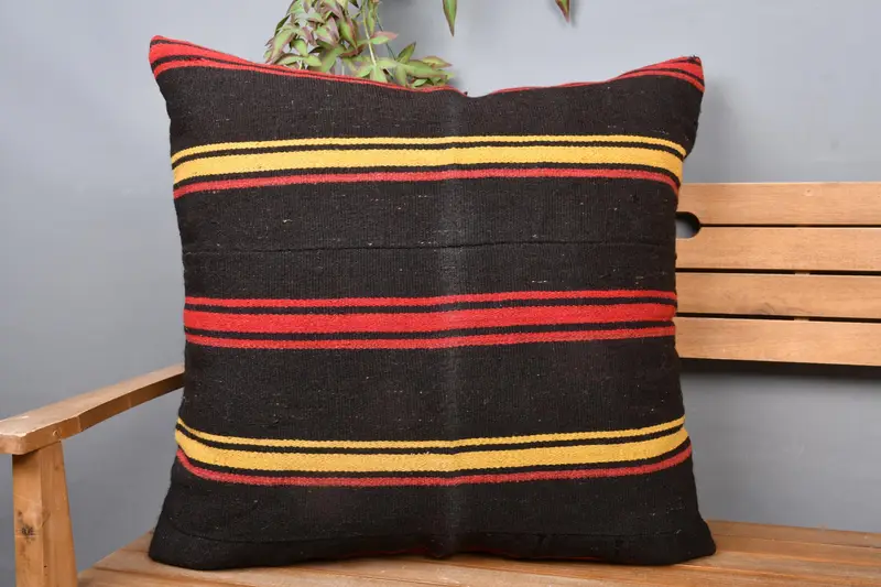 Embroidered Brown & Yellow Striped Throw Pillow, Versatile 28x28 Pillow