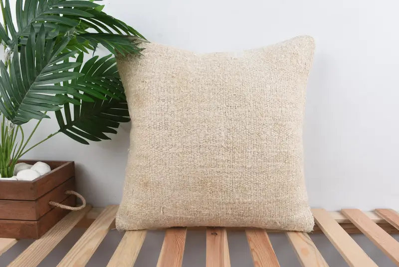 Beige Southwestern Embroidered Throw Pillow, 18x18 Handmade Comfort