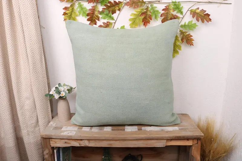 Handmade Southwestern Green Throw Pillow, 24x24 Vintage Embroidered Pillow