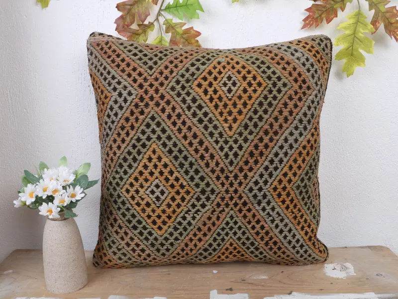 Brown & Beige Embroidered Throw Pillow, 18x18 Vintage Cushion