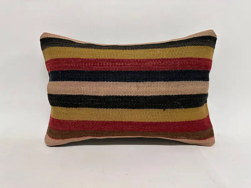 Embroidered Brown & Red Striped Pillow, Handmade Throw Pillow