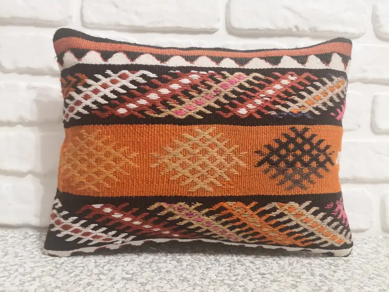 Handmade Wool Kilim, Striped Brown & Red Throw Pillow