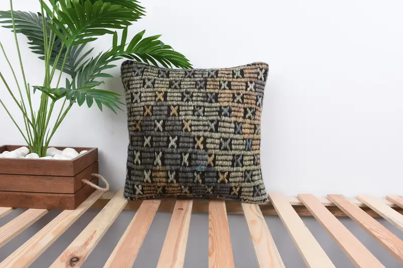Orange & Purple Embroidered Throw Pillow, 16x16 Handmade Cushion
