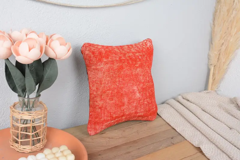 Embroidered Southwestern Red Throw Pillow, Vintage Handmade Cushion