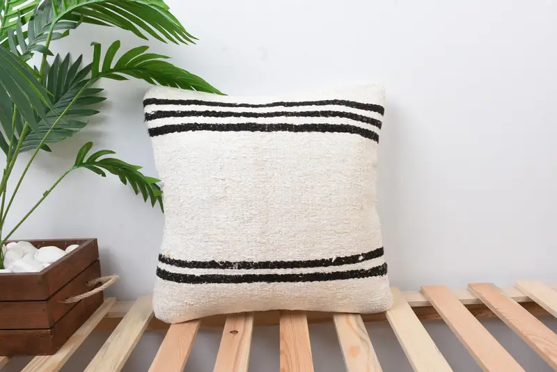 Handmade Striped Throw Pillow, Vintage 16x16 Cushion