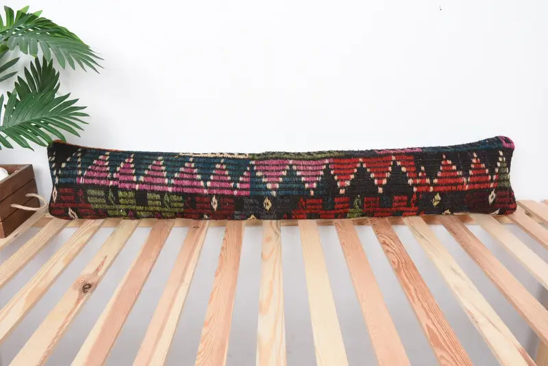 Handmade Embroidered Throw Pillow, Purple & Green Geometric Linen Pillow