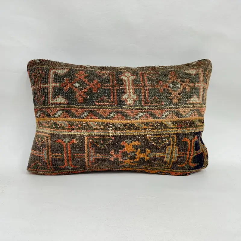 Brown Patchwork Throw Pillow, 24x16 Handmade Linen Cushion