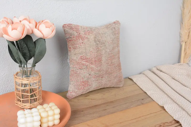 Red Southwestern Embroidered Throw Pillow, 12x12 Handmade Cushion