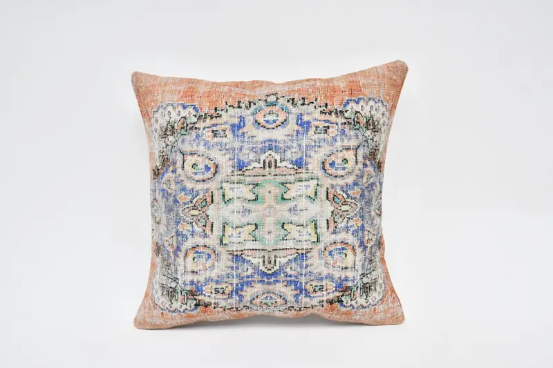 Orange Southwestern Throw Pillow, Handmade Embroidered Cushion