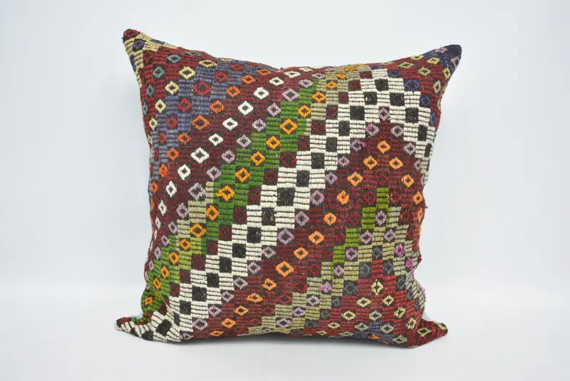 Red & Green Embroidered Throw Pillow, 32x32 Handmade Cushion