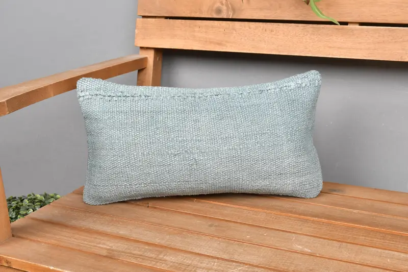 Handmade 8x16 Kilim Throw Pillow, Southwestern Green Cushion