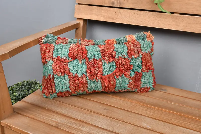 Red Southwestern Embroidered Throw Pillow, Vintage Handmade Cushion