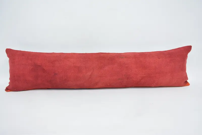 Red Embroidered Throw Pillow, 12x48 Handmade Cushion