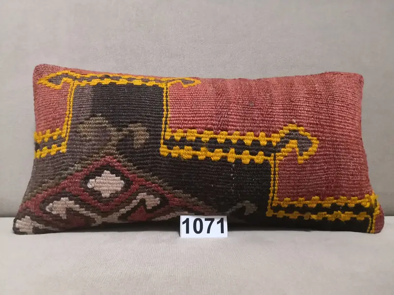 Handcrafted Wool Throw Pillow, Brown & Yellow Geometric Vintage Pillow