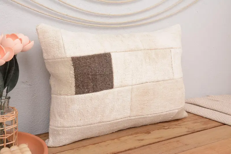 Handmade 16x24 Embroidered Throw Pillow, Vintage Patchwork Cushion