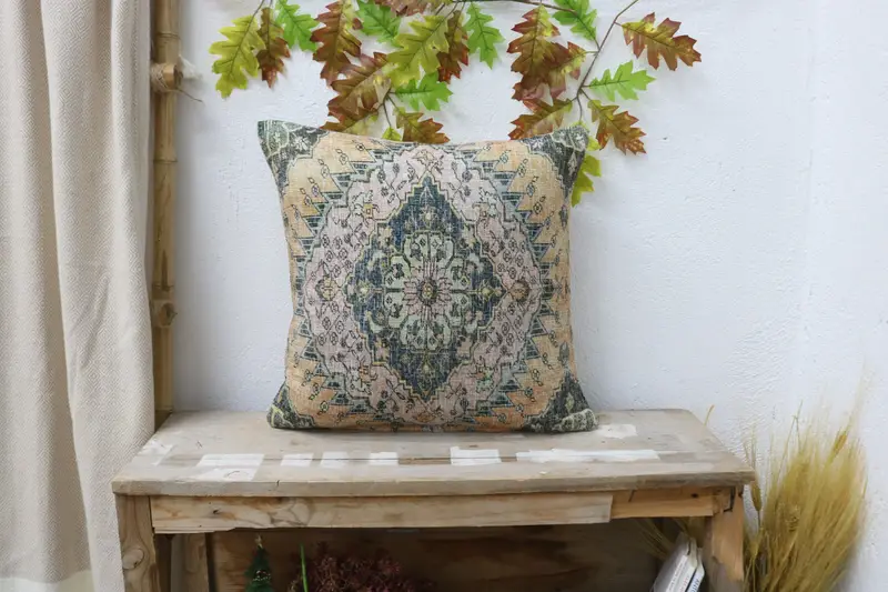 Embroidered Brown & Gray Pillow, Handmade Square Throw Pillow