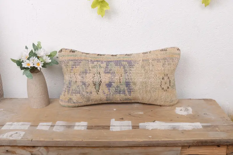 Purple & Green Floral Linen Throw Pillow, Vintage Rectangle Cushion