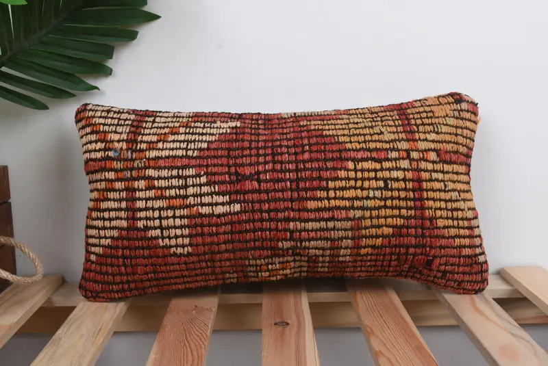 Red Southwestern Embroidered Pillow, 8x16 Handmade Throw Pillow