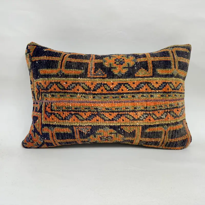 Blue & Orange Patchwork Throw Pillow, Handmade Embroidered Cushion