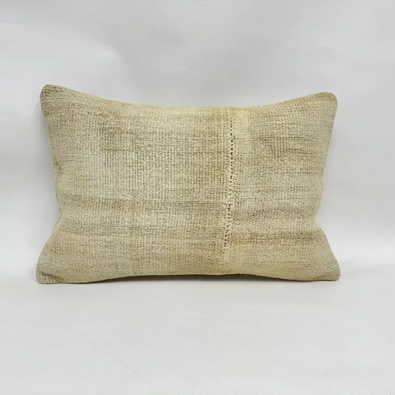 Embroidered Beige Patchwork Throw Pillow, Handmade Rectangle Pillow
