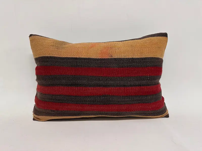 Red & Brown Striped Throw Pillow, Handmade Embroidered Cushion