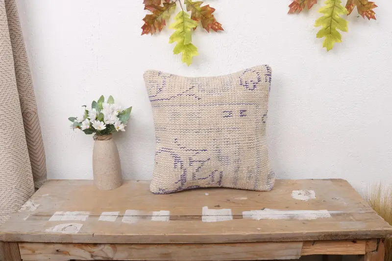 Blue Southwestern Embroidered Throw Pillow, Vintage Handmade Cushion