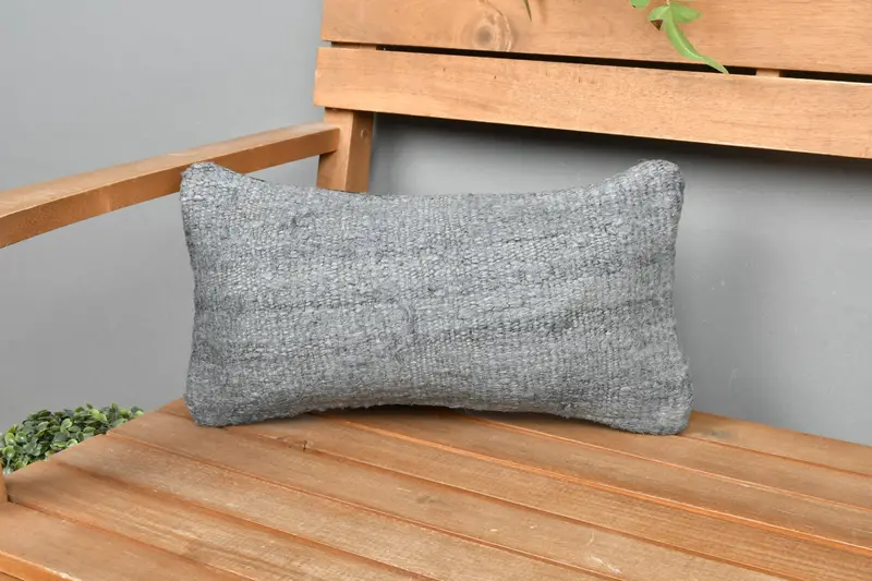 Gray Southwestern Embroidered Pillow, 8x16 Handmade Throw Pillow