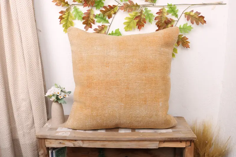 Orange Southwestern Embroidered Throw Pillow, Vintage Handmade Pillow