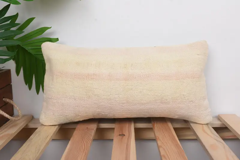 Handmade Embroidered Linen Throw Pillow, Vintage Beige Cushion