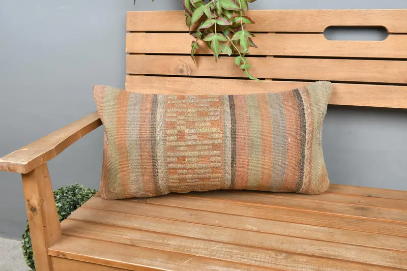 Orange & Green Southwestern Throw Pillow, Handmade Rectangular Pillow