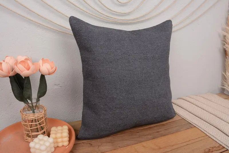 Handmade Embroidered Southwestern Pillow, 20x20 Gray Throw Pillow