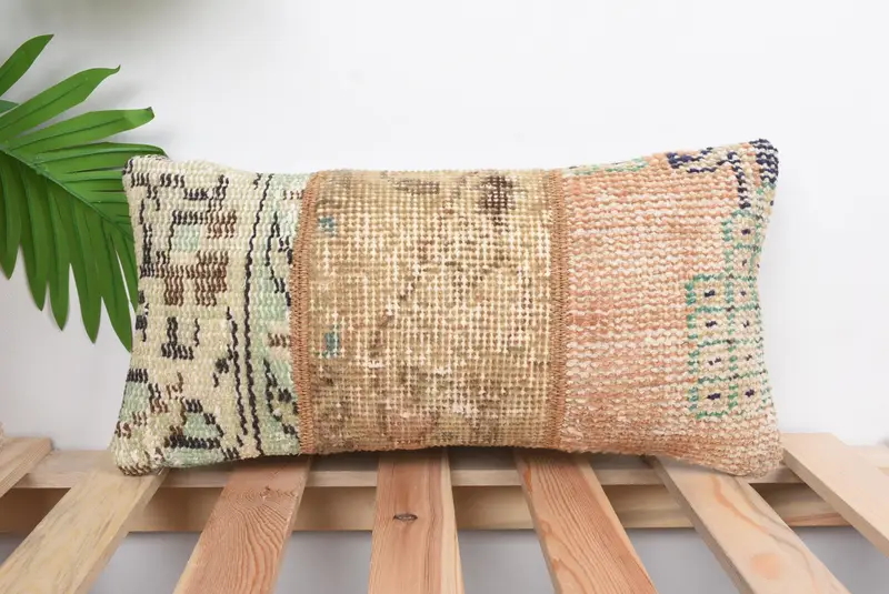 Orange & Beige Patchwork Throw Pillow, Handmade Embroidered Cushion