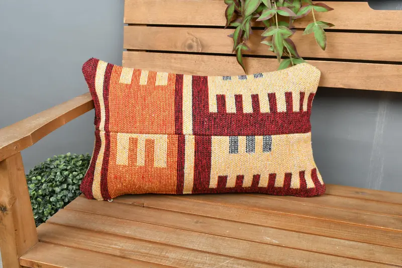 Red Southwestern Embroidered Pillow, Handmade Linen Throw Pillow