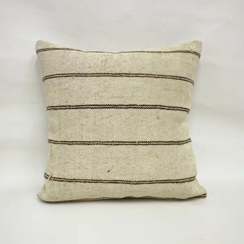 Beige & Brown Striped Throw Pillow, Handmade Embroidered Cushion