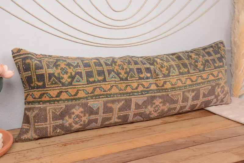 Handmade Embroidered Pillow, Green & Yellow Patchwork Throw Pillow