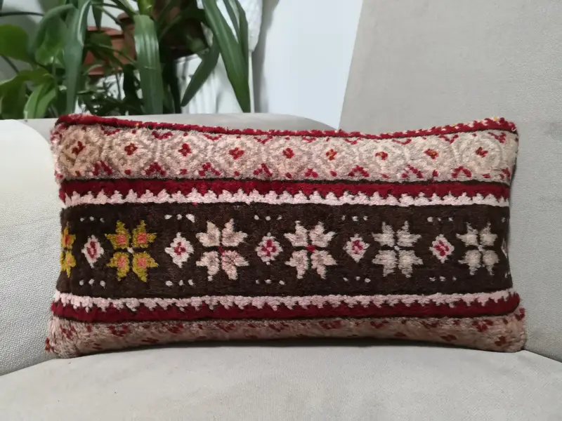 Handmade Striped Wool Throw Pillow, 16x8 Inch Rectangle Pillow