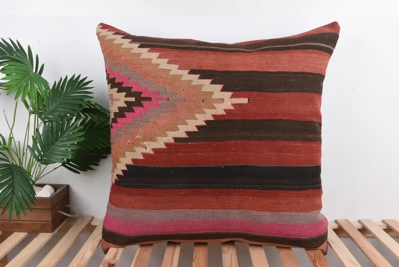Brown & Orange Geometric Throw Pillow, Handmade Linen Cushion
