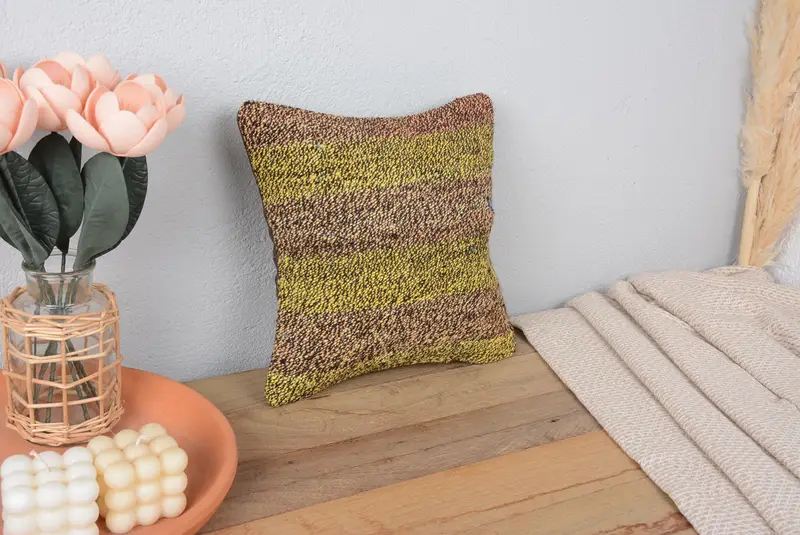 Handmade Striped Throw Pillow, Vintage Brown Linen Cushion