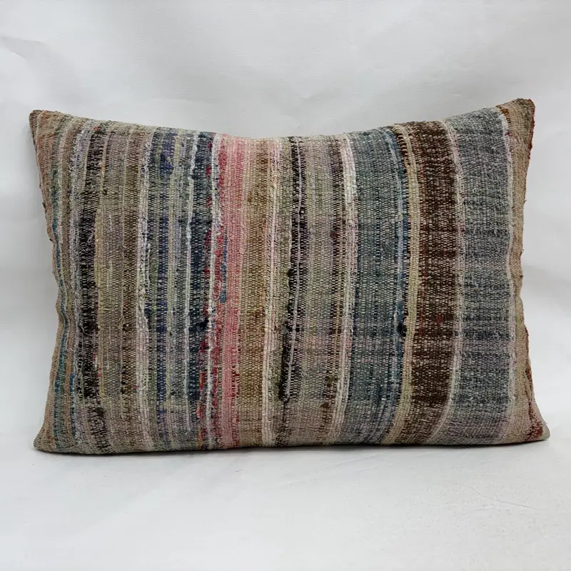 Blue & Brown Striped Throw Pillow, 20x28 Handmade Cushion