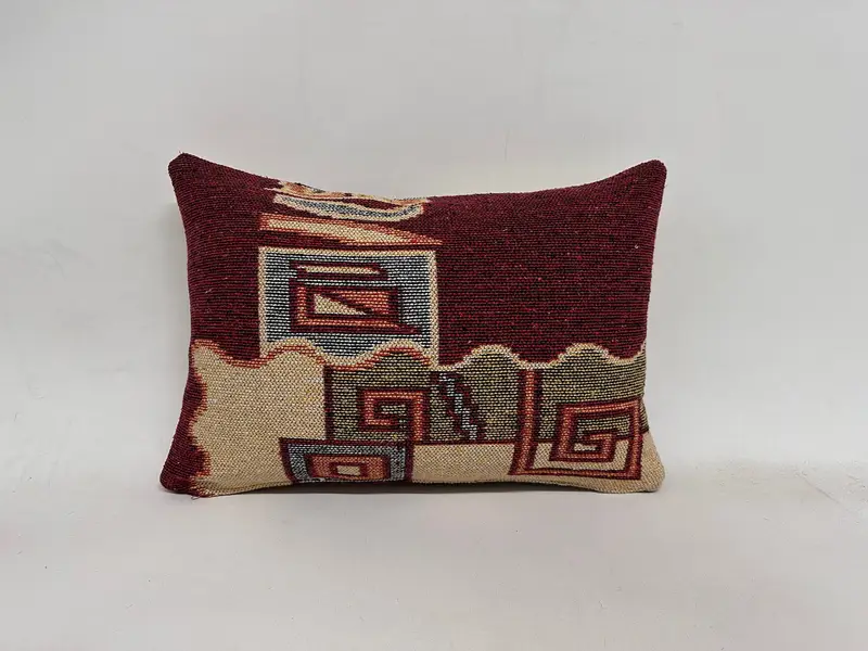 Red & Yellow Embroidered Throw Pillow, 16x24 Handmade Cushion