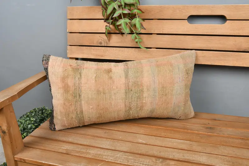 Green & Brown Striped Throw Pillow, Handmade Embroidered Cushion