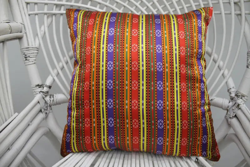 Striped 16x16 Embroidered Throw Pillow, Vintage Zippered Pillow